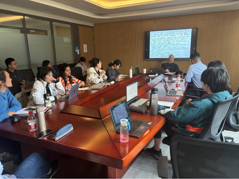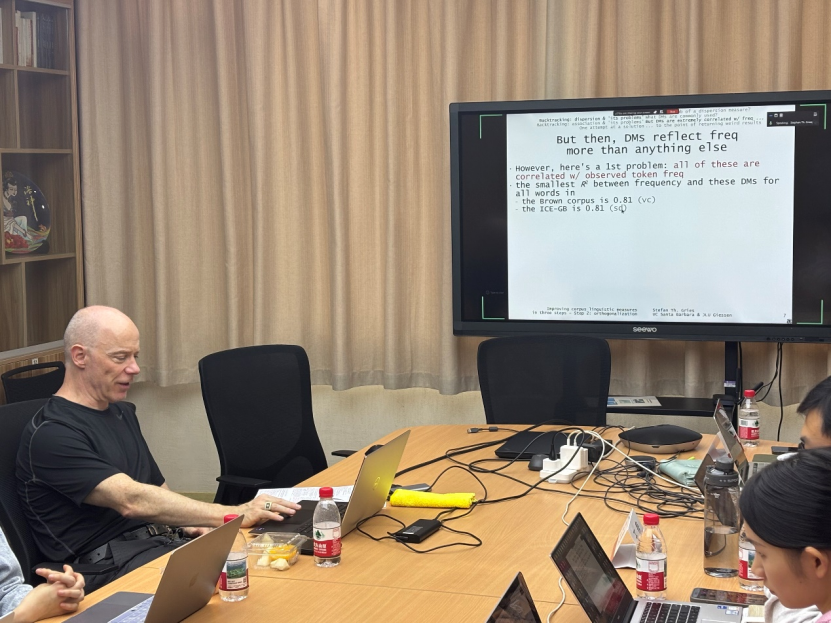 参会师生表示,此次系列讲座既夯实了语料库量化研究的方法基础,也拓展了其跨学科应用的认知边界,兼具实操性与前沿性,具有高度的学术价值与指导意义,为大家打开了语料库研究的新视野。Gries 教授此行系应吴诗玉教授邀请,在参加第四届“数据科学与二语研究”国际研讨会之余顺访交流。他在讲座中所强调的严谨量化方法、可复现研究范式与跨领域融合路径,与上海交通大学外国语学院近年来持续推进的“语言数据科学”建设高度契合。此次交流不仅进一步加深了学院与国际知名学者的学术联系,也为未来在语料库语言学、二语研究方法论以及法律语言科学等方向上的合作研究与人才培养奠定了坚实基础。
