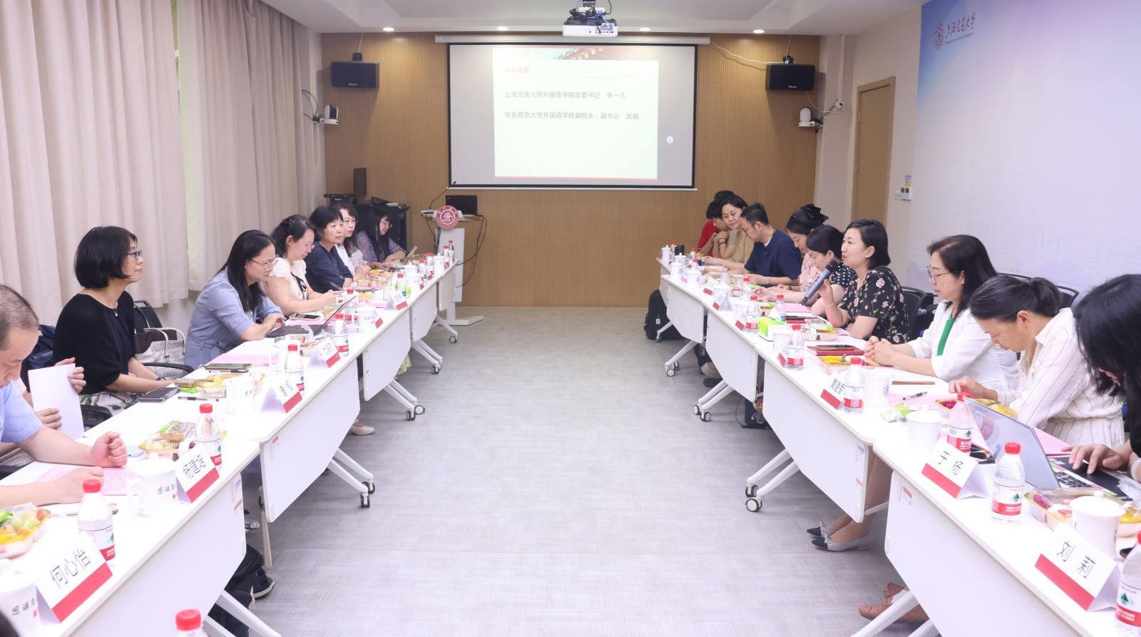 金秋送爽,高朋满座。9月17日下午在上海交通大学外国语学院107会议室迎来一场跨校交流盛会。华东师范大学外国语学院副院长、副书记武娟、外国语学院院长助理王婀娜、日语系主任尤海燕、日语西语系党支部党员、日语系、德语系教师代表、以及上海交通大学外国语学院党委书记朱一凡、副书记任祝景、日语系主任金文峰、德语系主任薛原、日德法俄语系党支部党员、日语系、德语系教师代表共同参与了此次活动。活动由华东师范大学外国语学院日西语系党支部书记乔颖与上海交通大学外国语学院日德法俄语党支部书记王琳共同主持。