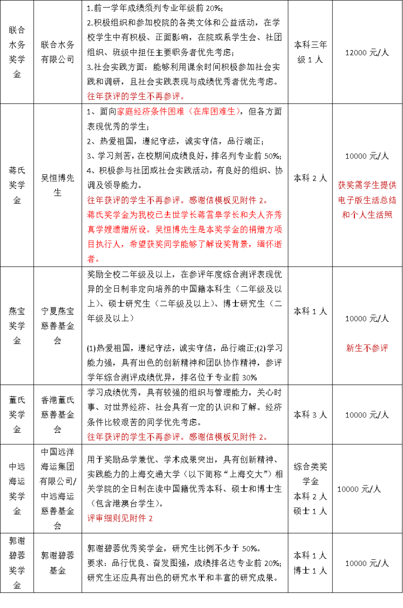 2. 对于已申请差额奖学金的学生,确定未获评前不得申请其他专项奖学金。